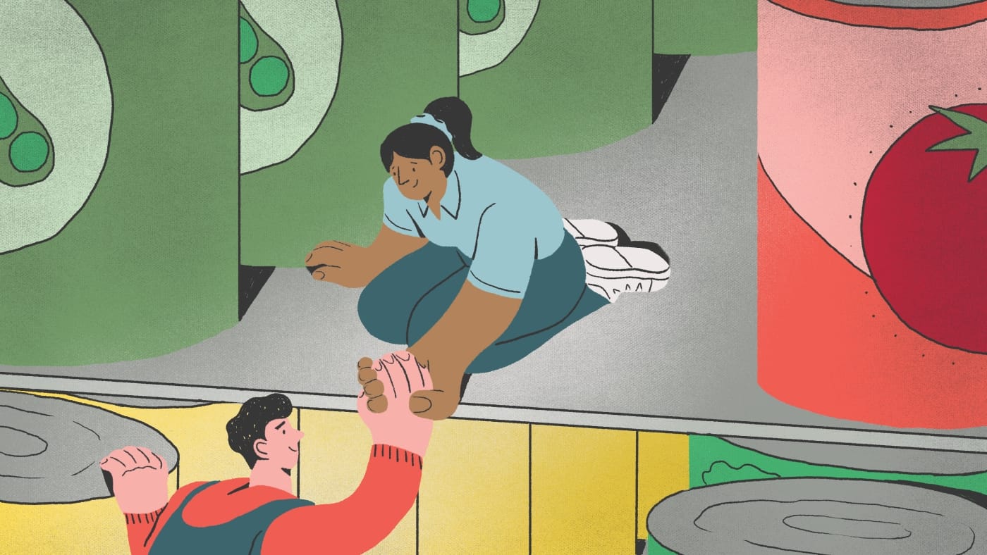 The two perused the pantry’s shelves, discussing what they might need to cook dinner. Waldron grabbed a paper bag filled with ingredients for creamy chickpea casserole, and Garland offered a not-so-subtle jab, “You can learn how to cook more stuff besides ramen.”