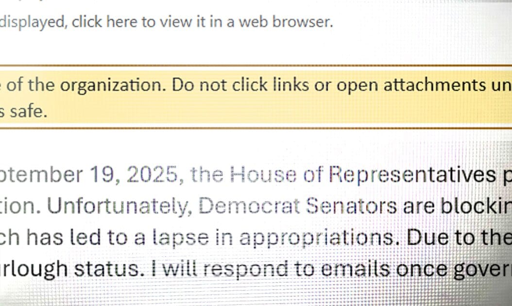 The lawsuit, filed by the American Federation of Government Employees in federal court late last week, challenges an automatic email from furloughed staff that blames U.S. Senate Democrats for the first government shutdown in nearly seven years after federal lawmakers failed to come to an agreement to extend funding beyond the Sept. 30 end of the fiscal year. Staff say the partisan messages were placed without their knowledge or consent.
