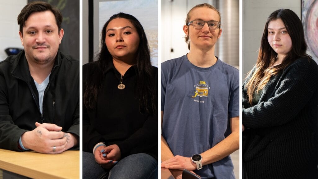 Muscatine Community College students in Iowa may get to pursue bachelor’s degrees. From left: Jake Siefers is majoring in psychology, Elexiana Oliva is majoring in criminal justice, Shiloh Morter plans to become an engineer and Jaylea Perez is pursuing psychology.