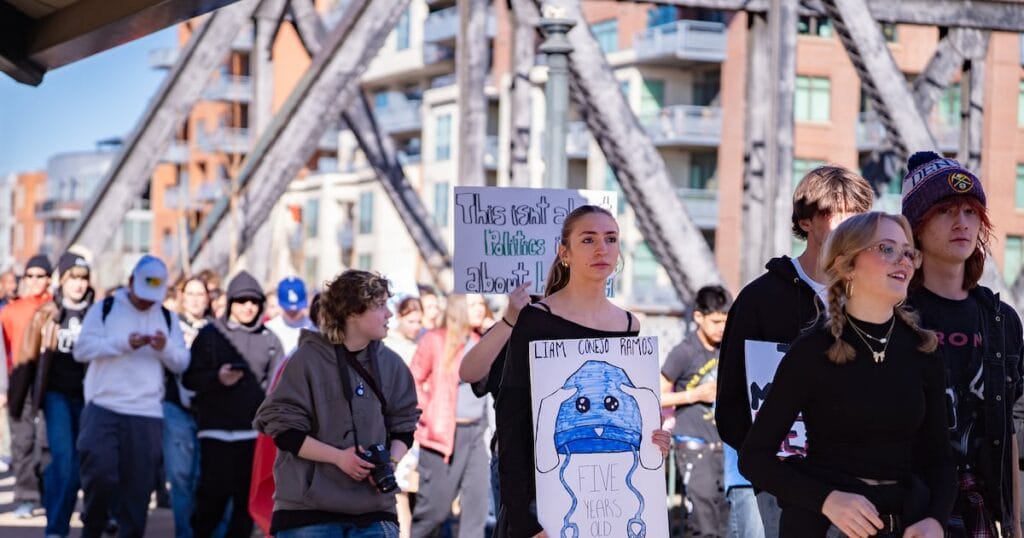 Office workers whizzed by on downtown Denver’s ubiquitous electric scooters and shouted their encouragement. Police officers blocked the route. When a few of the students gave two motorcycle officers a friendly wave, the officers nodded back.