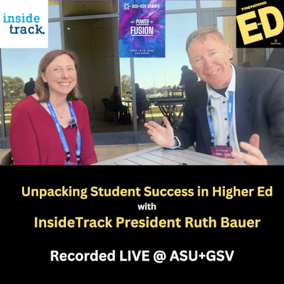 Mike Palmer catches up with Ruth Bauer, President of InsideTrack, amidst the sun and high-stakes energy of San Diego for the ASU+GSV conference. Ruth shares her transition from a first-generation college student and mall-employed English major to an e-learning “OG” (like Mike) to leading a powerhouse in student success at Inside Track.