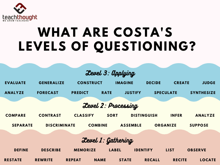 We’ve previously written about Bloom’s Taxonomy power verbs, so you can predict that Costa’s levels have their own set of power verbs, as well. Here are a few that you might find at the start of Level 1 questions: