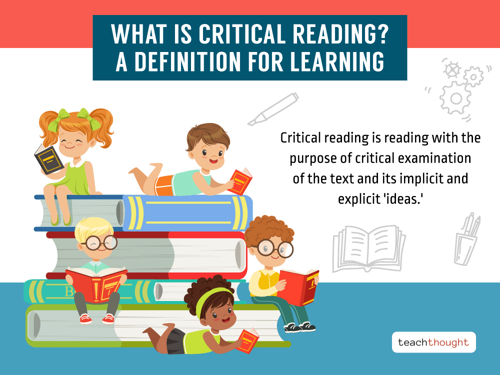 To add a bit more to that definition, we might say, “Critical reading is reading with the purpose of critical examination of the text and its implicit and explicit themes and ideas.”
